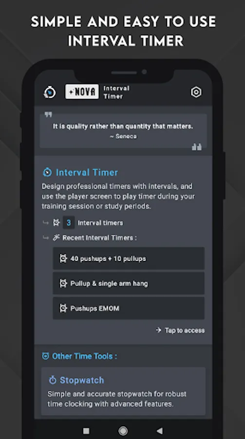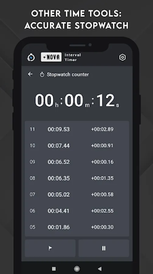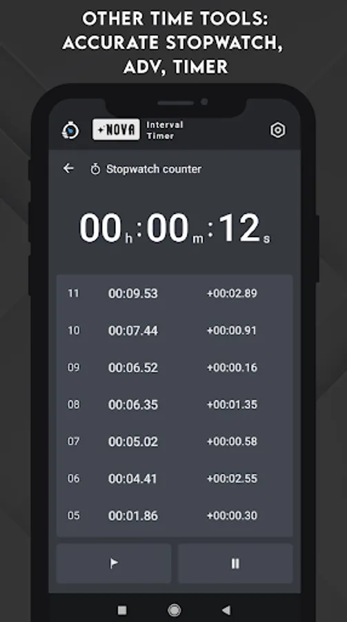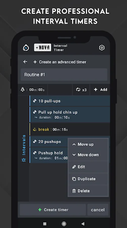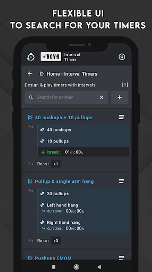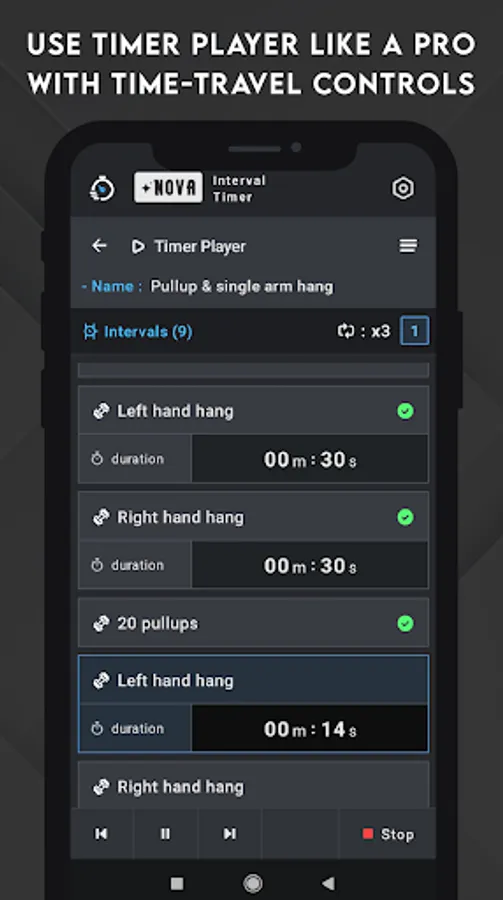 Create Interval Timers easily and take control of timer player screen to run and play your own workout/exercise routines to stay focused by using this intuitive and customizable features and tools Nova Interval Timer provides.