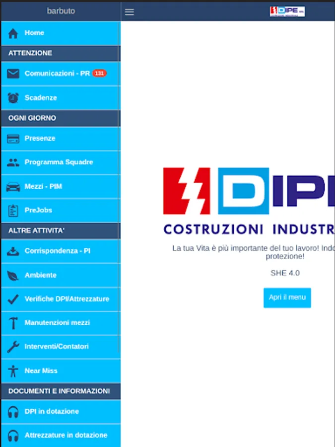 Application through which the workers of Dipe Srl carry out a series of activities aimed at improving and facilitating productivity as well as increasing worker safety.