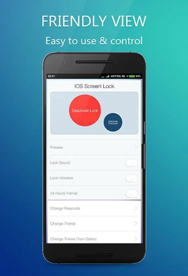 - Set Passcode to unlock screen, enable/ disable passcode,