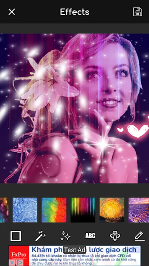 Glitter Effect can instantly beautify your photos with mind blowing Glitter Effects. With Glitter Photo Editor app you can make photos more beautiful and romantic by decorating them with fantastic free Glitter Overlay, add text and amazing stickers.