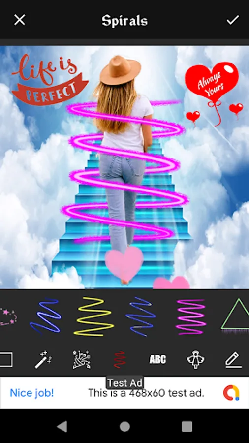 - Add spiral neon light or angel wings to your photo