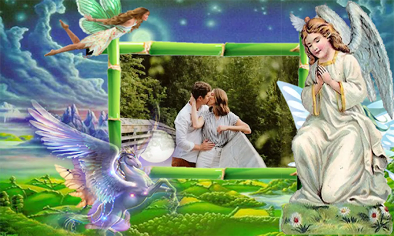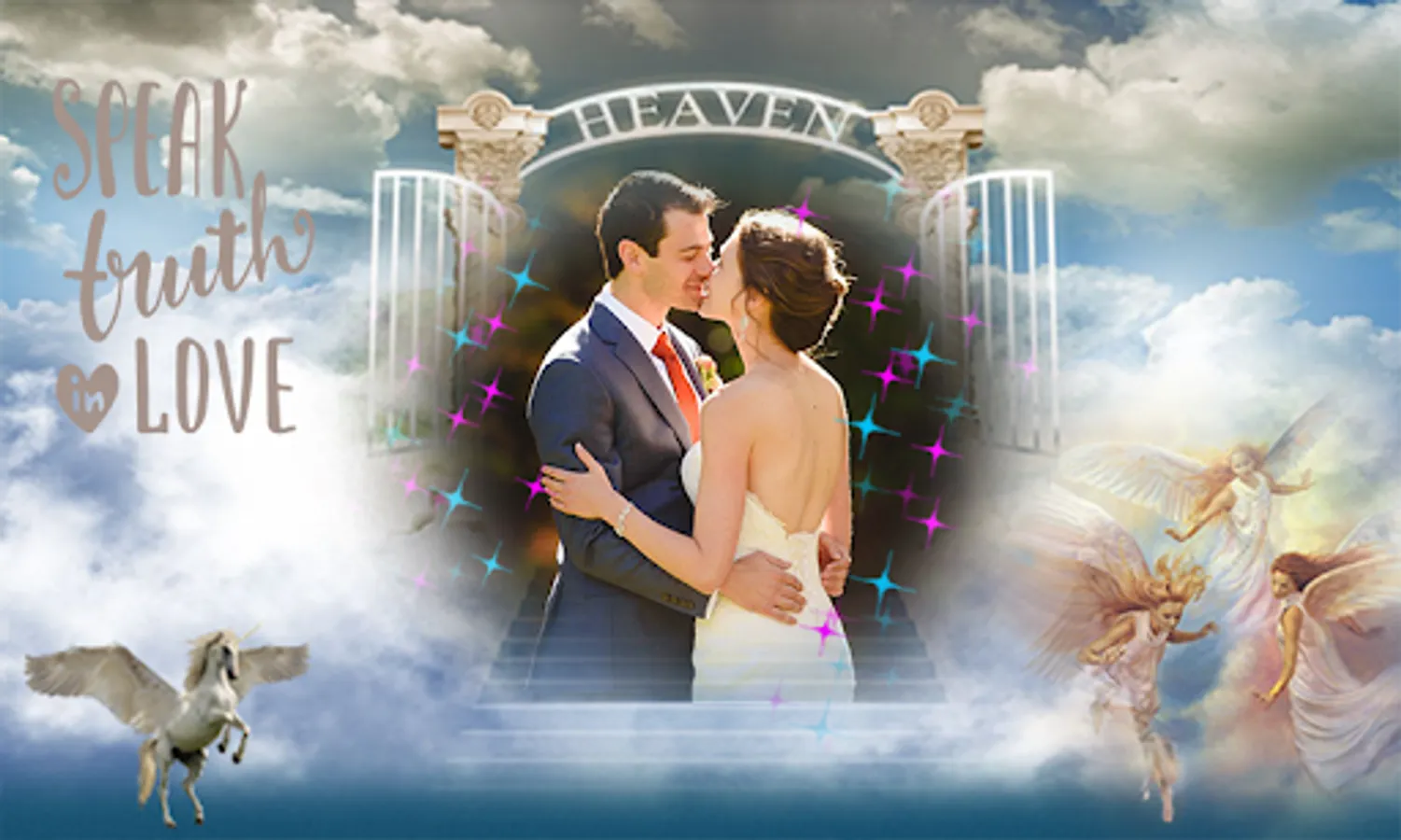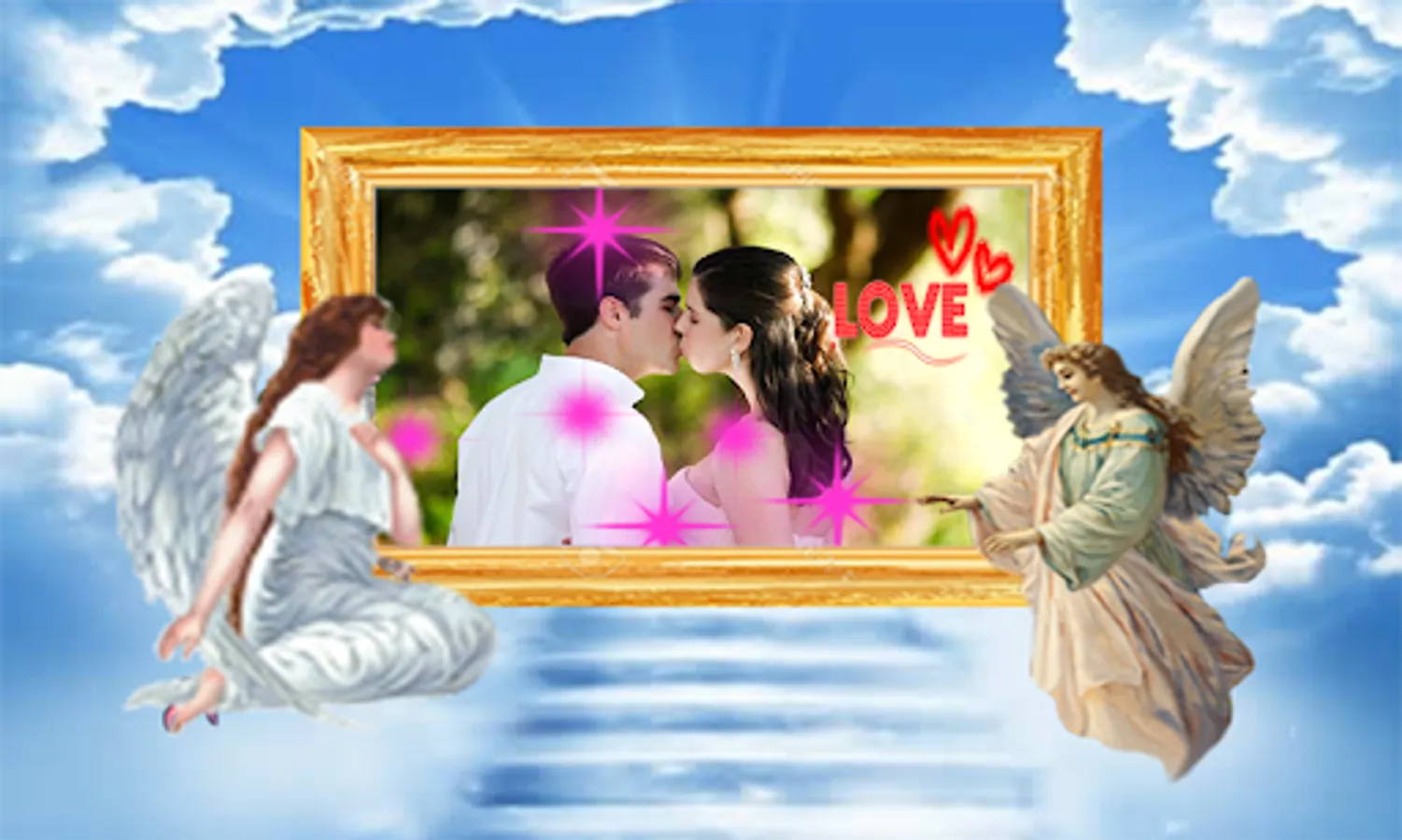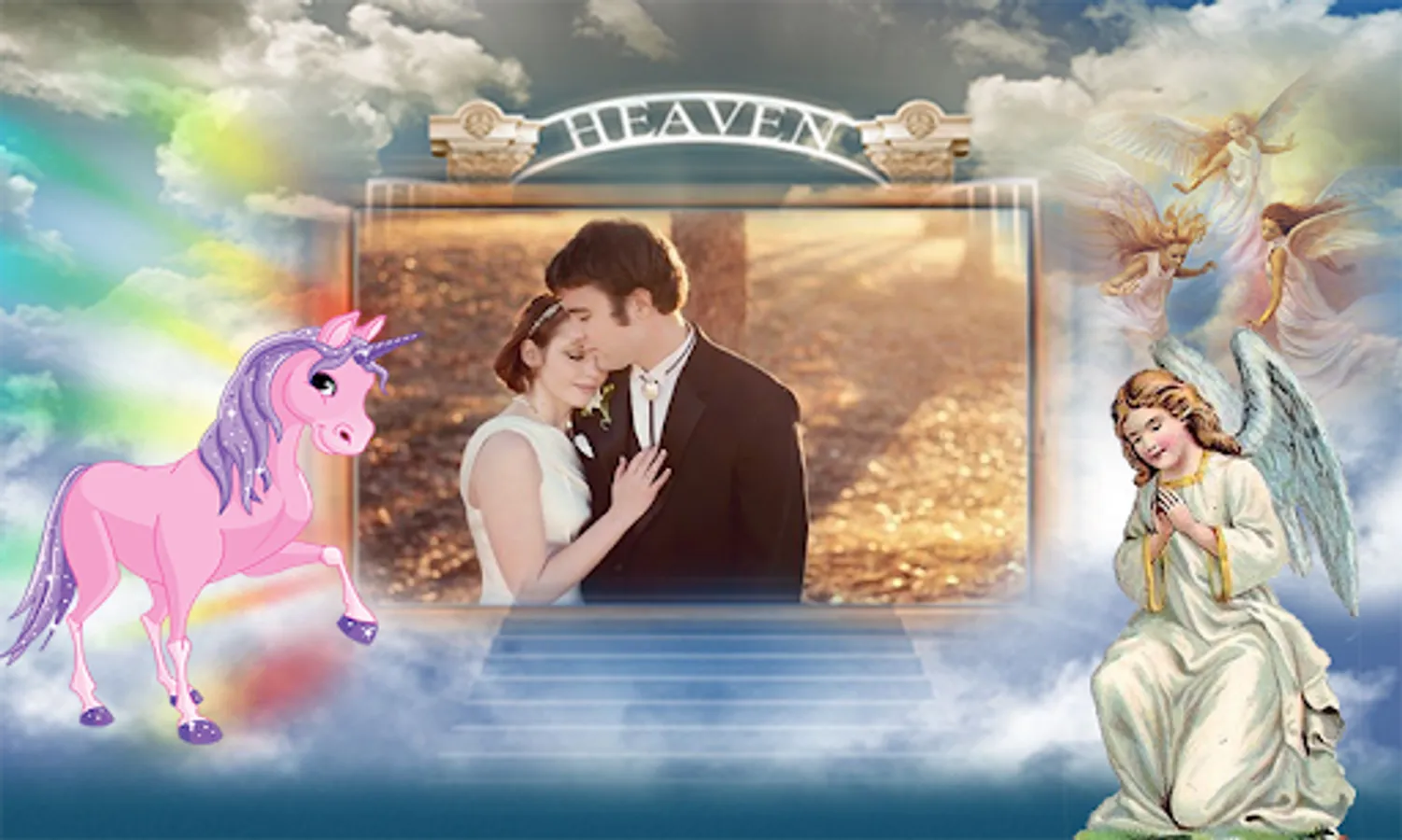 * Select a photo or selfie from the gallery of your phone and use this free Heaven photo Frame to decorate it!