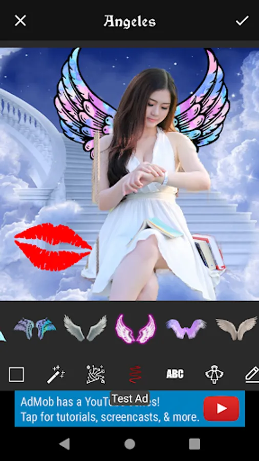 * Decorate with stickers like Angeles, sparkles, texts, to make photo more beautiful.