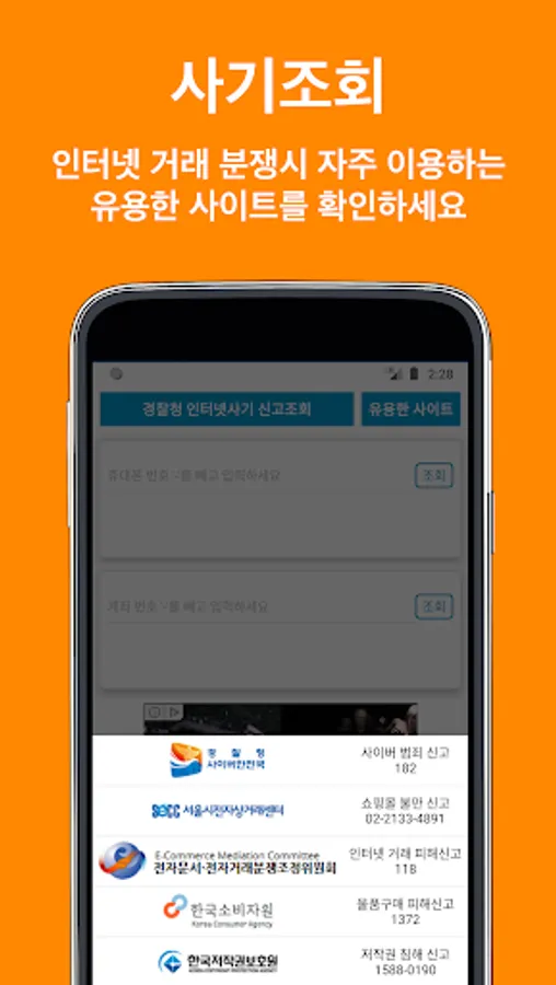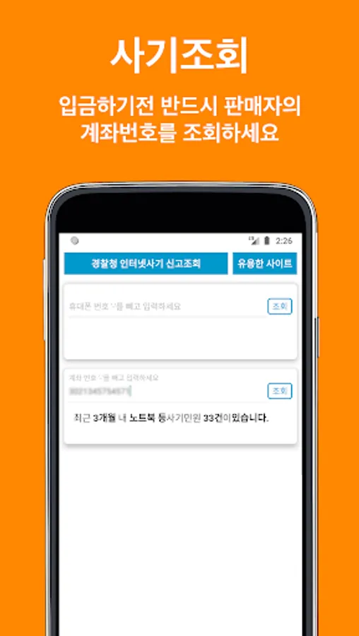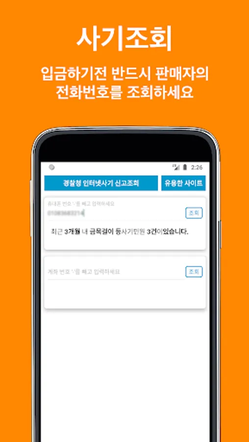 중고 사기 휴대폰/계좌 조회 Screenshots