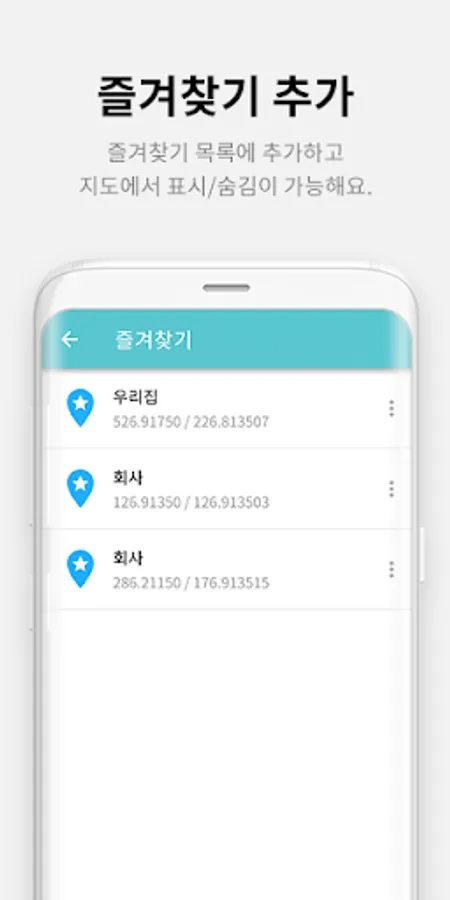 Press the Add (+) button at the bottom of the screen to add the current location to the bookmark or hide / show the bookmark on the map. You can also delete bookmarks from the bookmark list by sliding them to the left, or select them to move the map to that location.