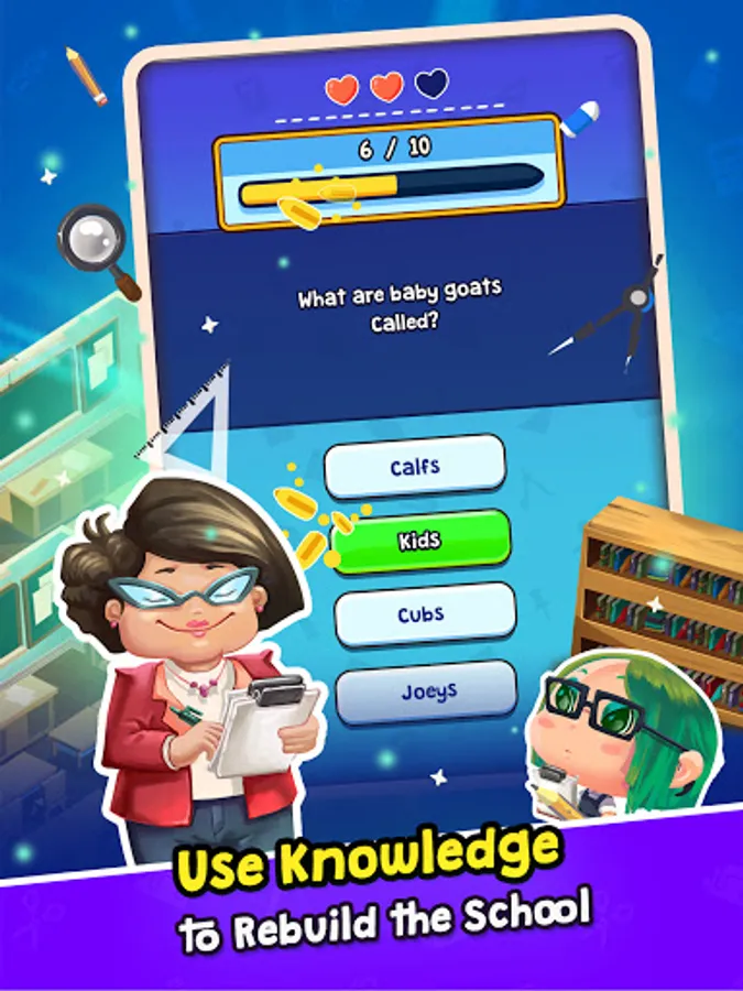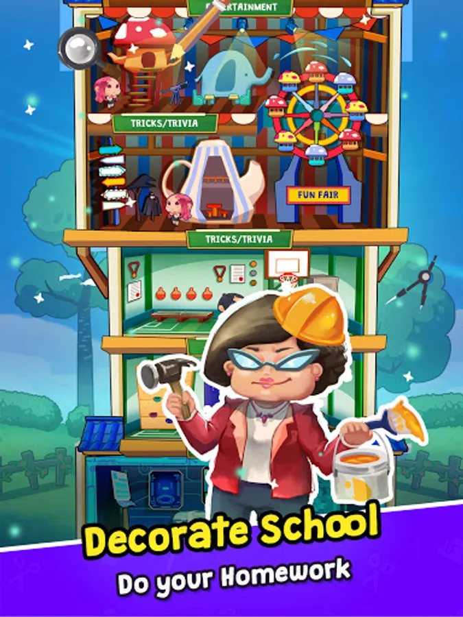 With knowledge, you can build your school and strive to be the best. There is a mix of adventure included where you can learn while traveling around the world. If you are ready, take up this challenge and compete with different players all around the world . Be the real EDUKING.