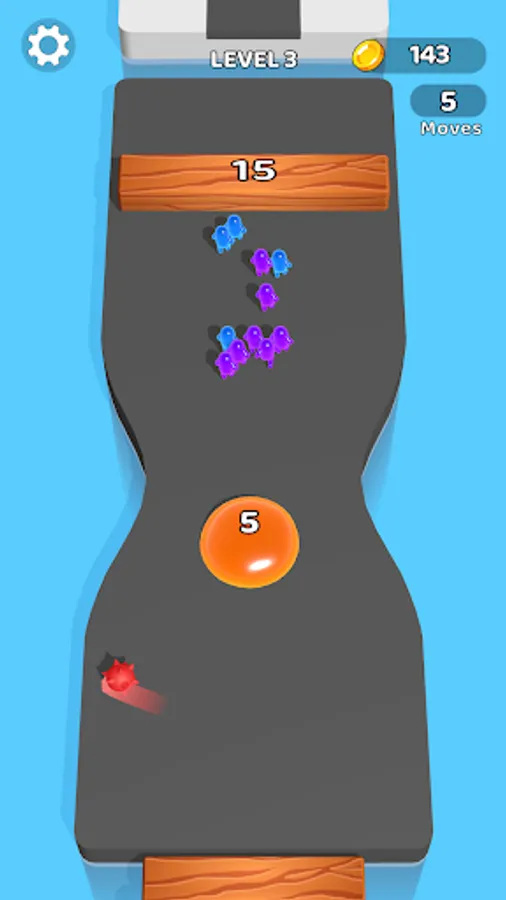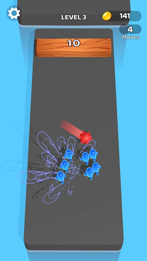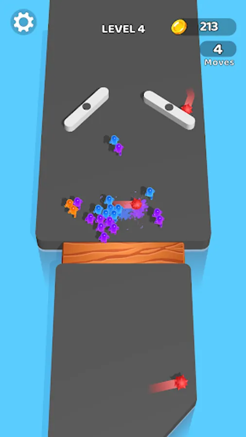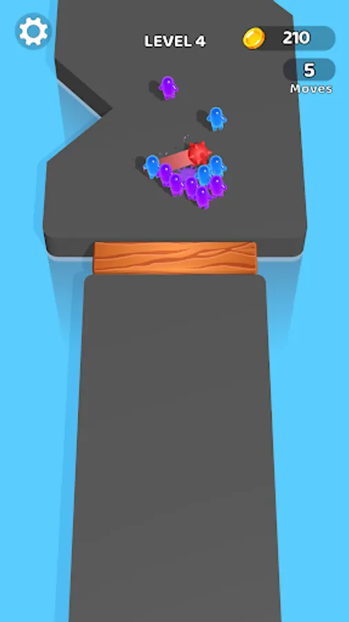 Hold down to make the blob bigger.Release your finger before touching any obstacles and generate many blob men to push the board and get the treasure!