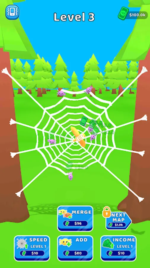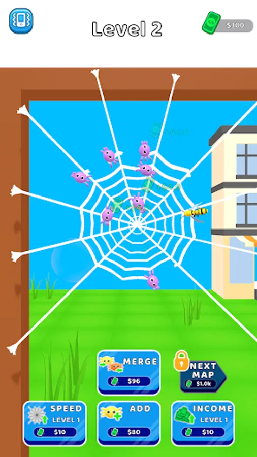 Become a cute spider, patiently weave a big web, catch all the creatures that pass by, try to become a good hunter!