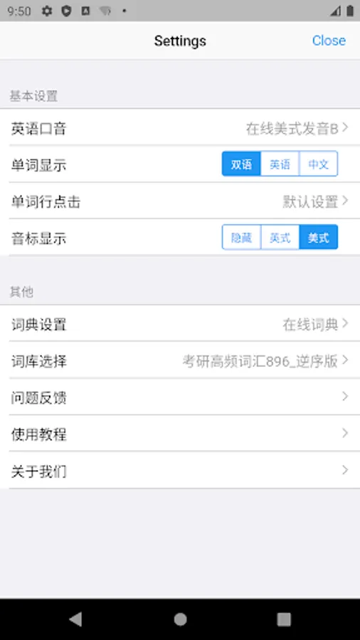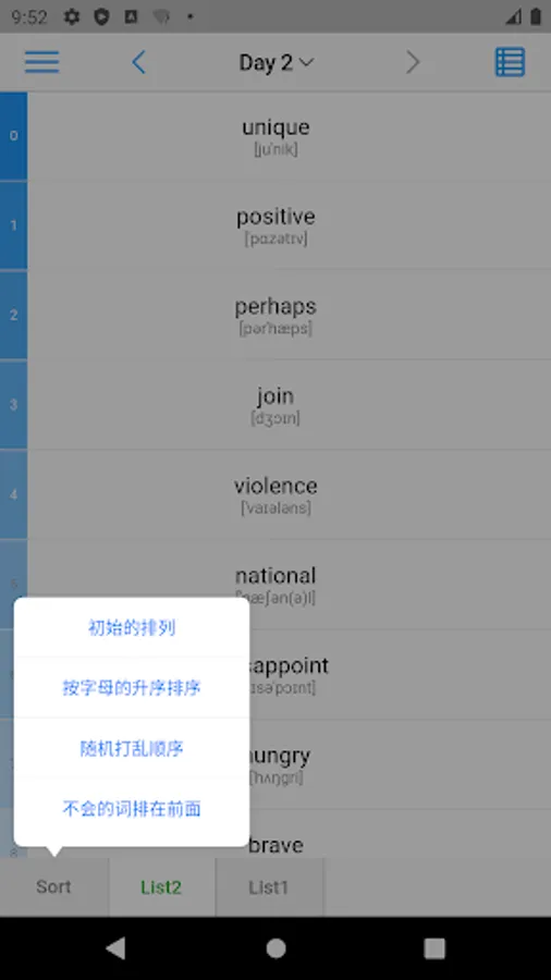1. The default setting, click on the word line, there will be pronunciation, the blue mark will be darkened, and the ‘no degree’ will increase by one;