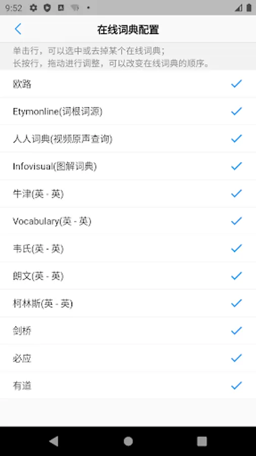 2. Long press the word row, use the dictionary to query more definitions and examples, including query closing, built-in multiple online dictionaries;