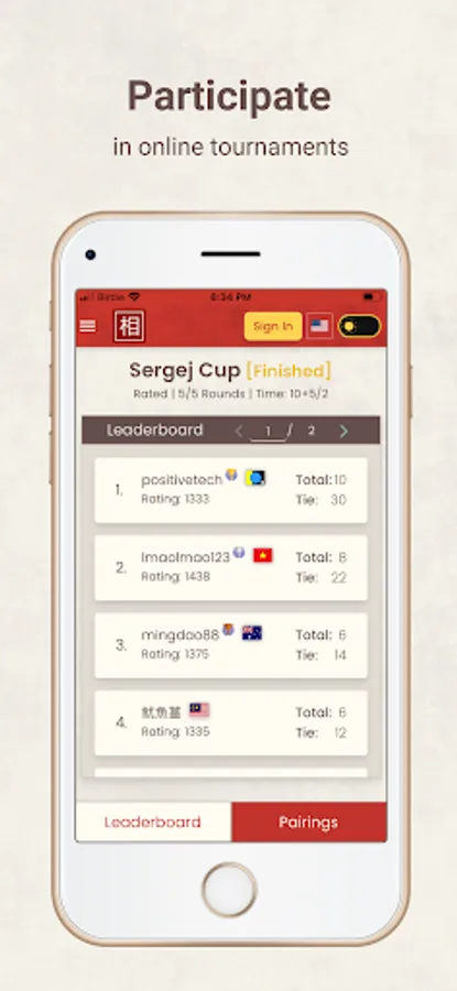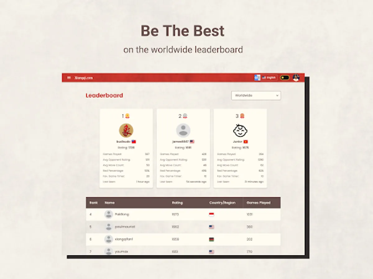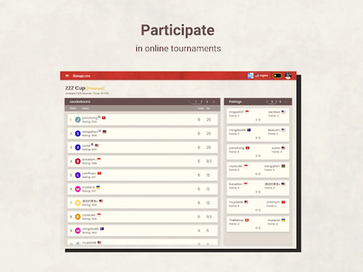 ✓Participate weekly online Xiangqi tournaments to compete with players from all over the world