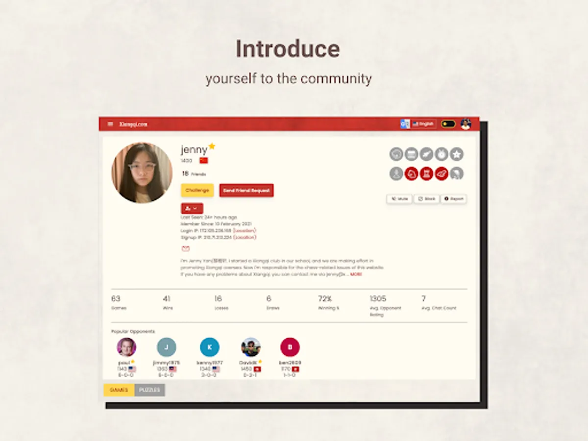 To develop the best Chinese chess App for lovers all over the world, Xiangqi.com has formed an extremely professional and international team, including former professional Chinese chess players, senior chess coaches, IT experts, and world-famous entrepreneurs, in order to better promote Chinese chess, this ancient treasure of Chinese culture, to every corner of the world.