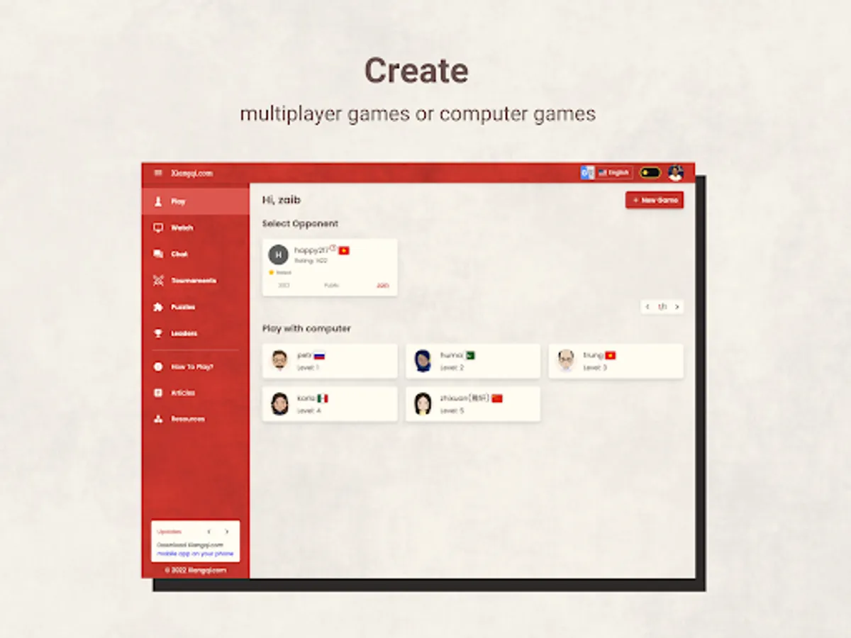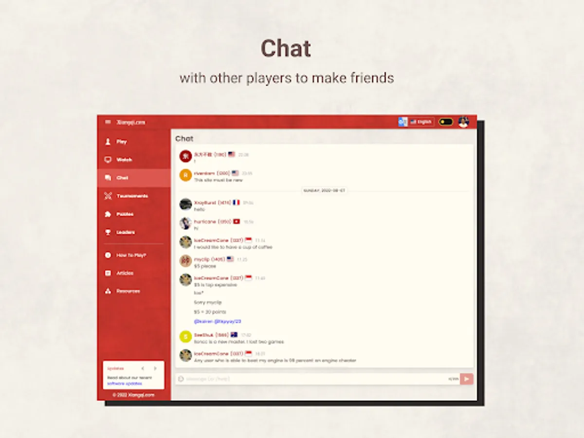 Whether you are a beginner learning Chinese chess, a casual Xiangqi player for fun, or a Xiangqi expert trying to become a better player, we believe Xiangqi.com is the best choice for you. Xiangqi.com is a free Xiangqi/Chinese Chess online platform where players can play online Chinese Chess 2 player game or computer game, participate online Chinese Chess tournaments, review your game using Strong Chinese Chess AI analysis, and more. Meanwhile, as the most international Chinese chess online platform, Xiangqi.com provides multi-language interface including Traditional Chinese, Simplified Chinese, English, Vietnamese, etc. So, everyone can enjoy Xiangqi/Chinese Chess with no language barrier.