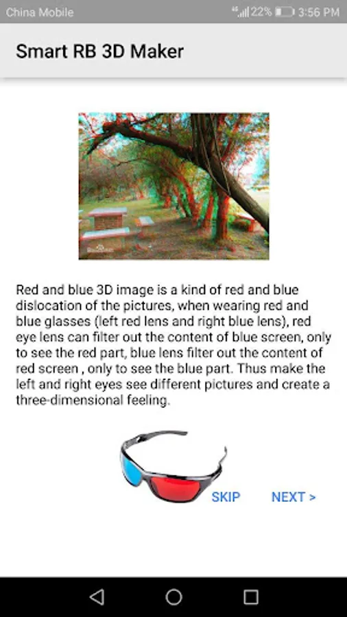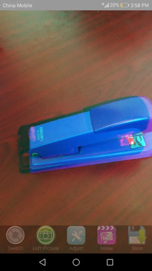 You can use "Smart 3D Maker" casually to shoot images of "Anaglyph", which makes images look stereoscopic when wearing red and blue cellophane glasses!
