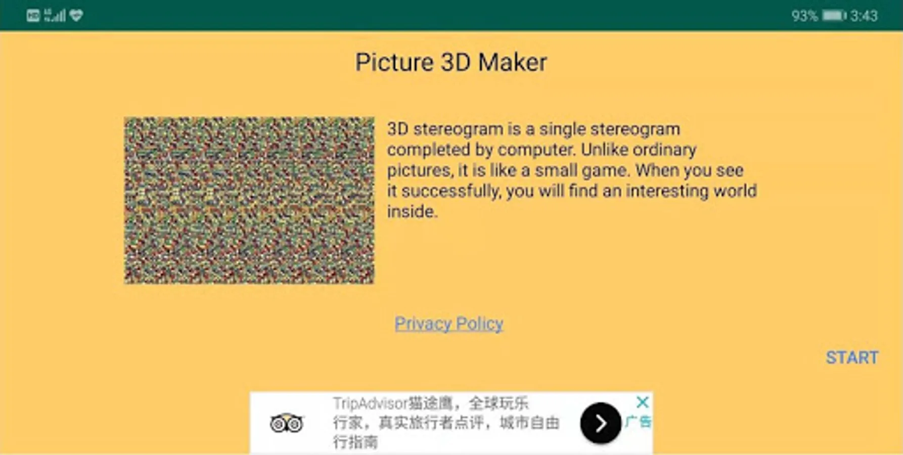 3D stereogram is a single stereogram completed by computer. Unlike ordinary pictures, it is like a small game. When you see it successfully, you will find an interesting world inside.