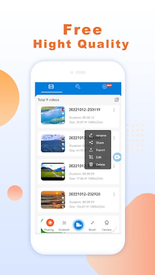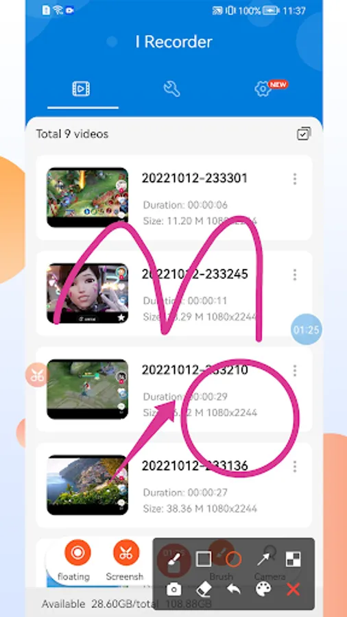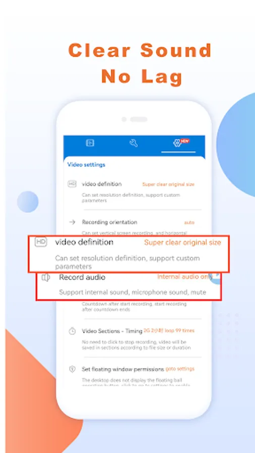 iRecorder, simple but not simple, has everything in core technology to meet the individual needs of users. The operation of the floating window is fast and convenient, and the screen recording can be realized with one key. The definition mode provides three modes: SD, HD, and UHD. The SD mode saves memory size on the basis of being able to see clearly. Ultra-clear mode realizes recording of ultra-clear video and ultra-clear playback.