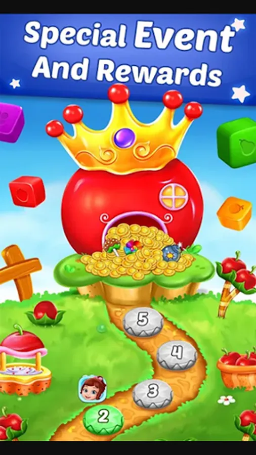 Tap to crush 2 or more adjacent cubes of the same color, 5 or more create a boost.