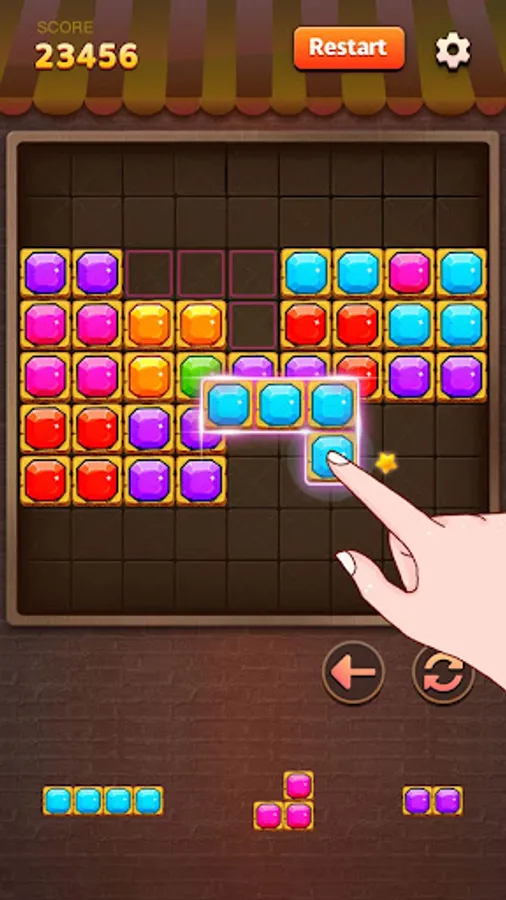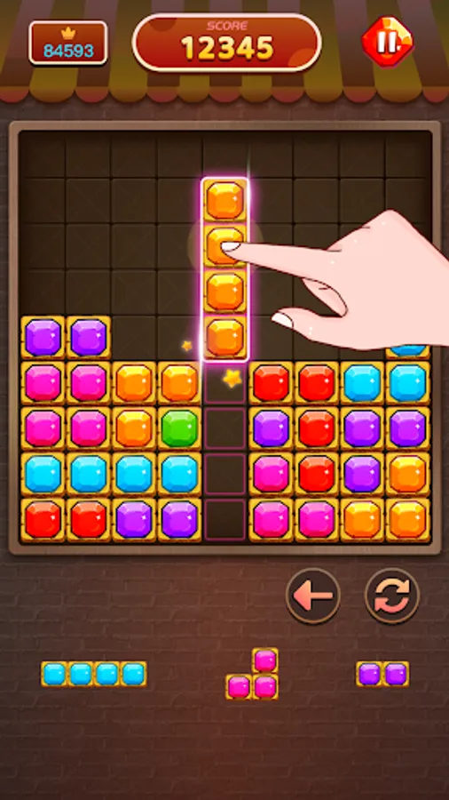 -Use blocks to form horizontal or vertical lines, which will disappear from the board