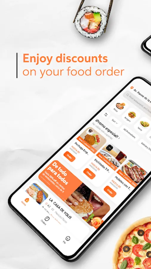 Are you craving sushi, pizza, or a salad? Download DiDi Food now to enjoy our promotions and discount coupons: get up to 50% off on your delivery order!