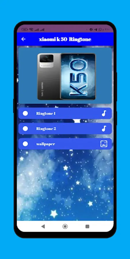 "Xiaomi K50 Ringtone" is a mobile application that provides users with a diverse selection of high-quality ringtones for their Xiaomi K50 smartphones. The app features a user-friendly interface that allows users to easily browse through different categories and select their favorite ringtones.