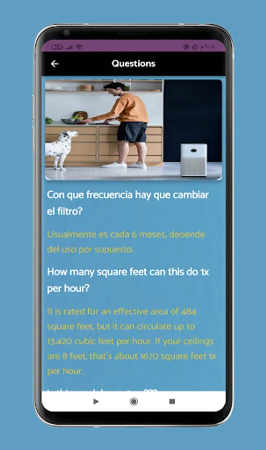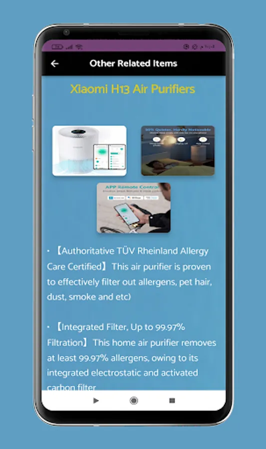 Content of Xiaomi Air Purifier 4 Guide app :-