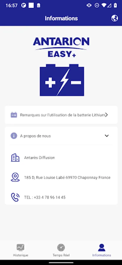 Cette application est destinée exclusivement à la connexion et à la surveillance en bluetooth des batteries Lithium ANTARION Easy +