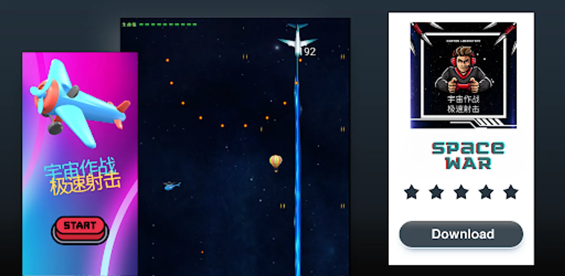This is an aircraft combat game. When I was a child (less than 10 years old), I used scratch to write a game of aircraft battle, and I gained a lot of honors and awards through this game (until today you search for "Zhang Xiaoyan programming" on baidu.com, you can also find At that time, for the news report on the game I wrote), I only learned python briefly at that time, and I didn't know much about java, so I couldn't put it on the phone. Thankfully, in March 2023, the great OpenAI company released the earth-shattering chatGPT4.0. Thanks to the help of GPT, I finally recoded it with android studio and moved this game to all android mobile phone users around the world. Today is a beautiful day, I don't know how to describe my mood at the moment, please have a chance to try this game (completely free), I hope you will like it. I will continue to work hard in the future, and the next game will be a Tetris game. Please wait and see. Thanks