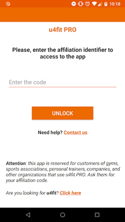 This app is reserved for customers of gyms, sports associations, personal trainers, companies, and other organizations that use u4fit PRO. Ask them for your affiliation code.