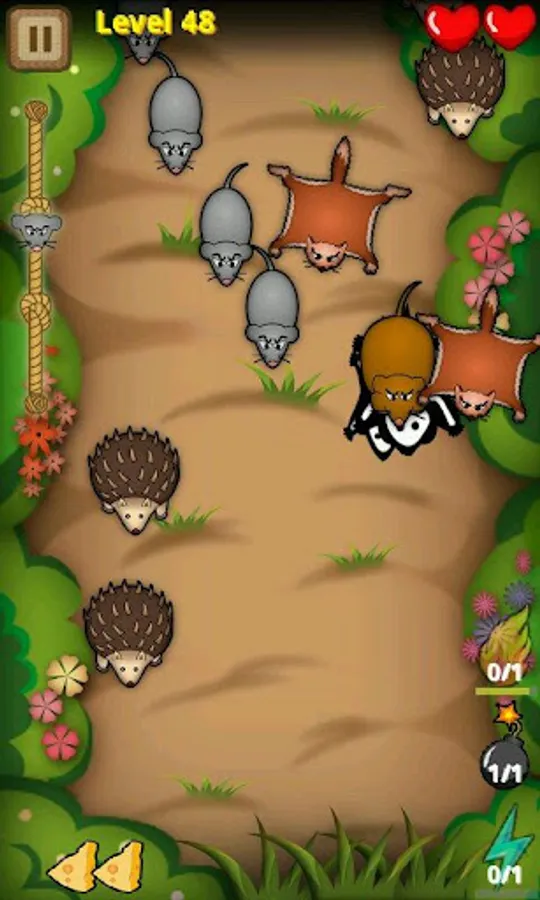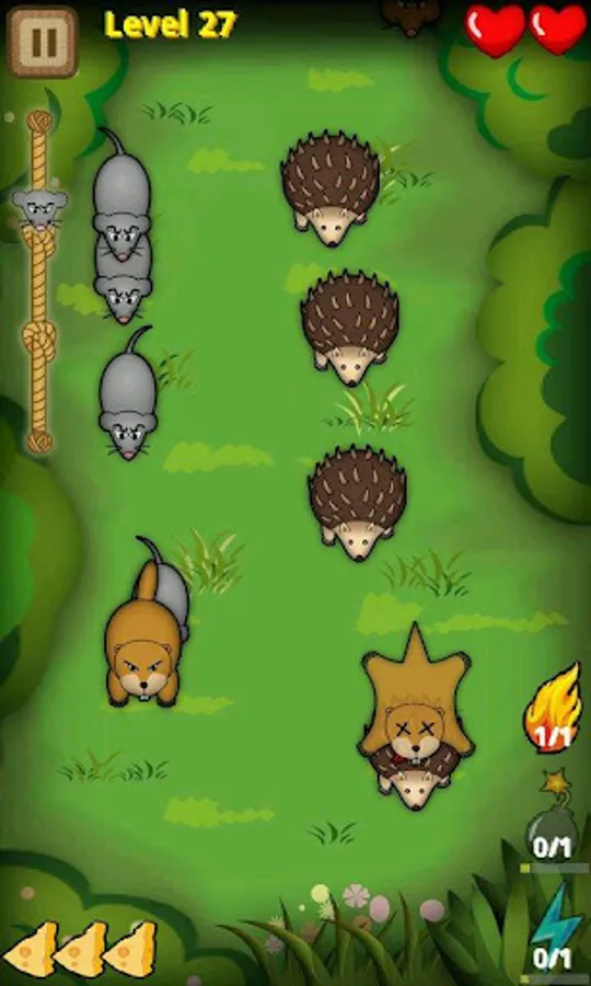 A large group of mice of unknown origin invaded your farm. Being a cheese farm owner, it's time to stand and defend your home. Now, only you can stop these greedy mice. Is your reaction fast enough? Fast tapping with your fingers, beating, grinding and repelling these mice. To destroy a cluster by wisely making the best use of your powerful tools, such as bomb, fire and lightning.
