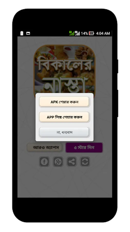 বিকালের নাস্তার রেসিপি ( nasta recipe bangla ) নিয়ে আমাদের এই bikaler nasta অ্যাপটি। বিকালের নাস্তা / nasta recipe বিভিন্ন রকম ভাবে করতে আমরা পছন্দ করি। নাস্তার রেসিপি অ্যাপটিতে বিভিন্ন রকমের নাস্তা বানানোর প্রক্রিয়া ও উপকরন সর্ম্পকে বলা হয়েছে। নাস্তা রেসিপি আপনাদের নাস্ত সর্ম্পকে ভালো আইডিয়া প্রদান করবে। সকালের নাস্তা নিয়ে আমাদের অ্যাপ রয়েছে আপনারা সেটা ডাউনলোড করে নিতে পারেন।