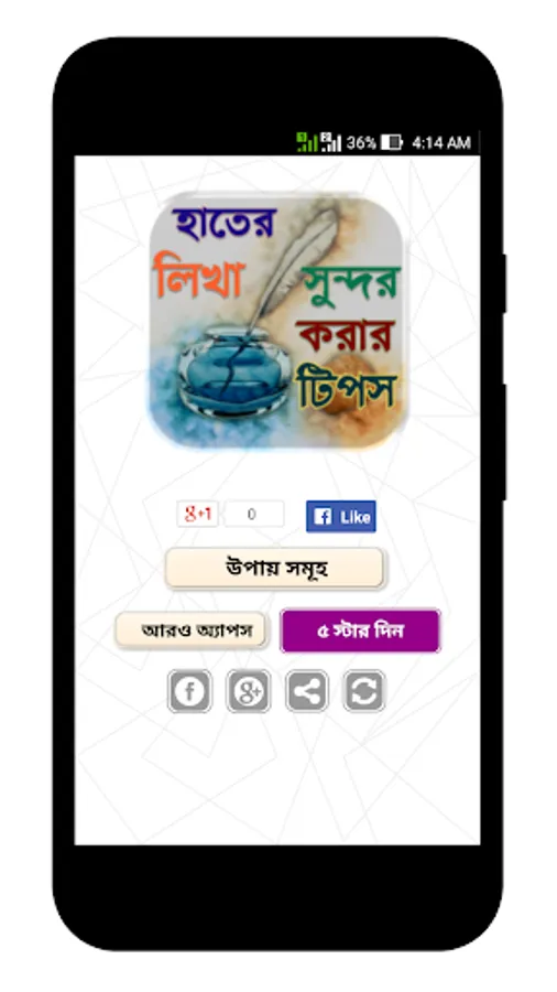 হাতের লেখা সুন্দর করার উপায় নিয়ে আমাদের এই অ্যাপটি। আমারা আপনাদের হাতের লিকা সুন্দর করার কৌশল জানবো যে কাজ গুলো করলে আপনারা খুব তাড়াতাড়ি হাতের লেখা ভালো করতে পারবেন। লেখার ডিজাইন সুন্দর করার উপায় জানতে পারবেন। তাতে করে আপনাদের লেখা ডিজাইন ও ভালো হবে।