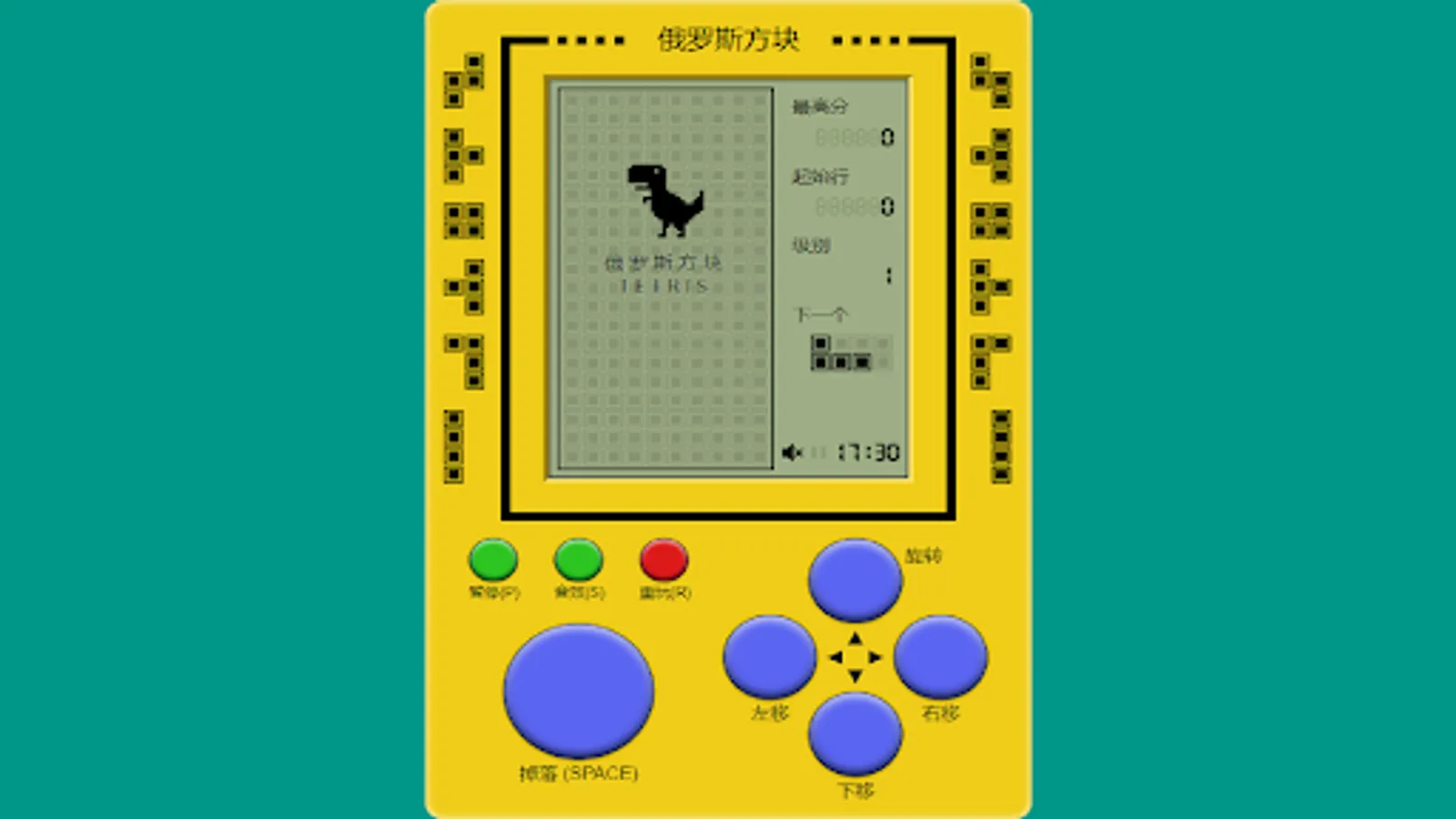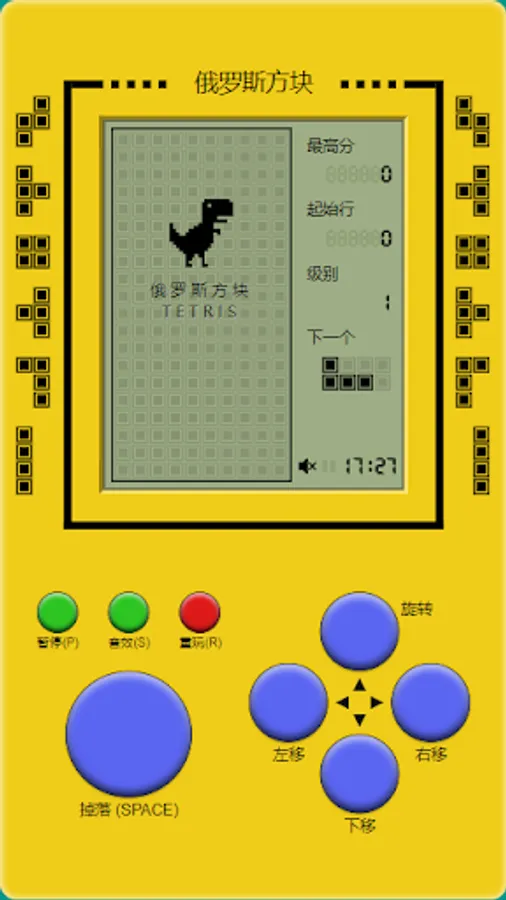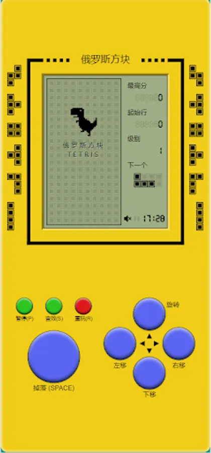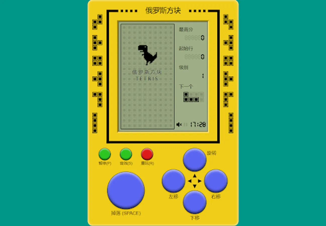 The main elements in the game are different shapes of Tetris composed of four squares, each of which is composed of four small squares, and the shapes include strips, squares, L-shaped, reverse-L-shaped, S-shaped and Z-shaped. These blocks will gradually fall from the top of the game interface, and the player needs to move and rotate the blocks to form a horizontal complete row at the bottom. Once a row is completely filled, the row is cleared and points are awarded. If the cubes pile up to the top of the game interface, the game is over.