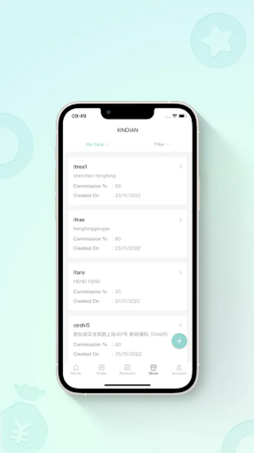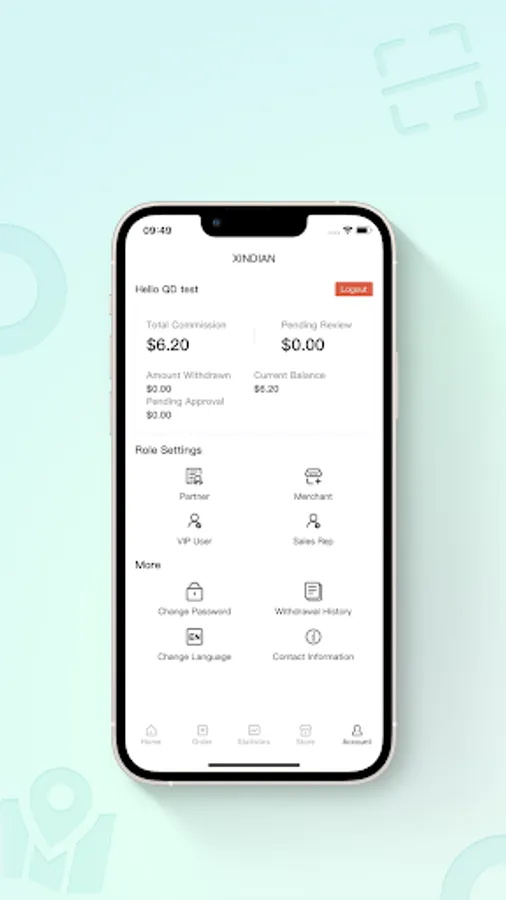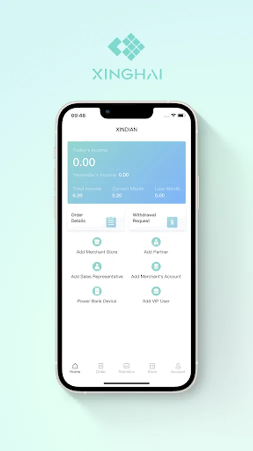 Check the rental order details, check the statistics of merchants, salesmen and agents; change passwords, withdraw cash, and switch languages;