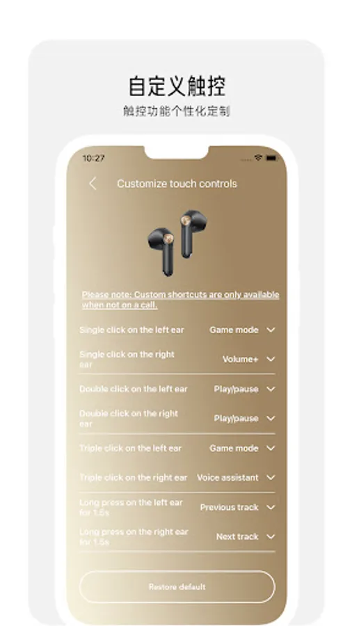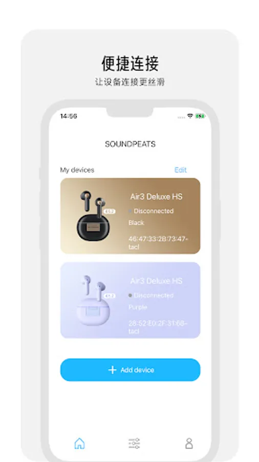 SOUNDPEATS Bluetooth Earphones' dedicated app comes with an intuitive user interface that reveals hidden functionalities of our products. It allows for swift headphone pairing, gesture customization, volume control, call handling, and wear detection, enhancing both the value and entertainment value of our products. Furthermore, the app offers firmware upgrade options, ensuring your products can be easily transformed and updated as new features become available.