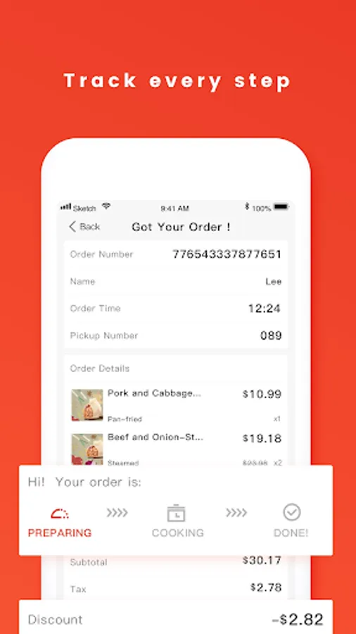 Once you place an order, you can follow every step of your order from the app. JIAO uses advanced methods to streamline the whole cooking flow and provide real-time updates on customers’ orders.
