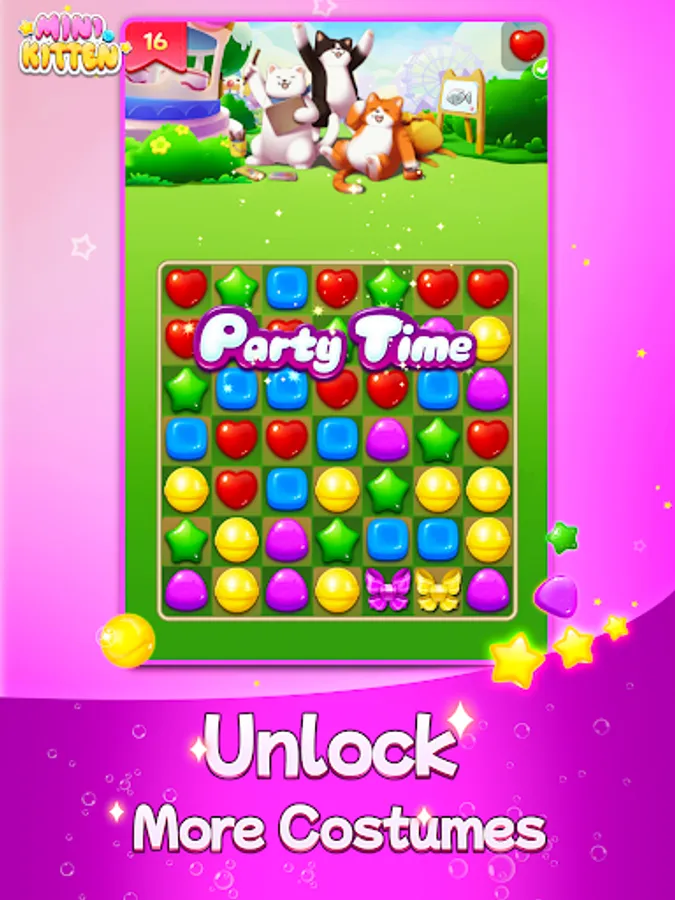 In the game, you can play with cute cats, they will take you into the happy elimination paradise.