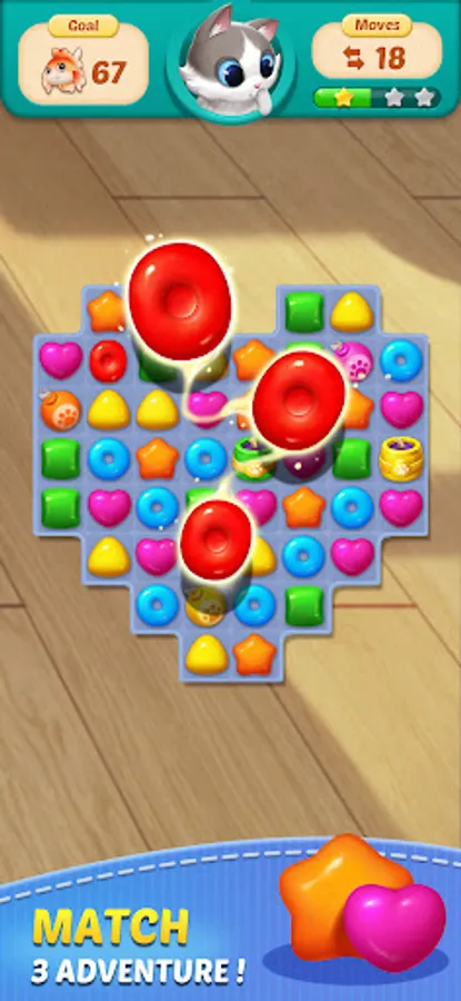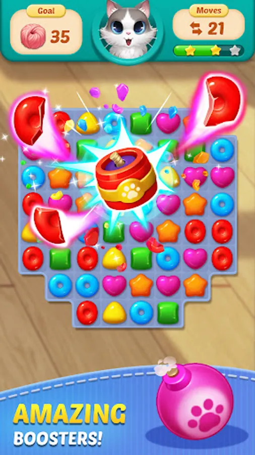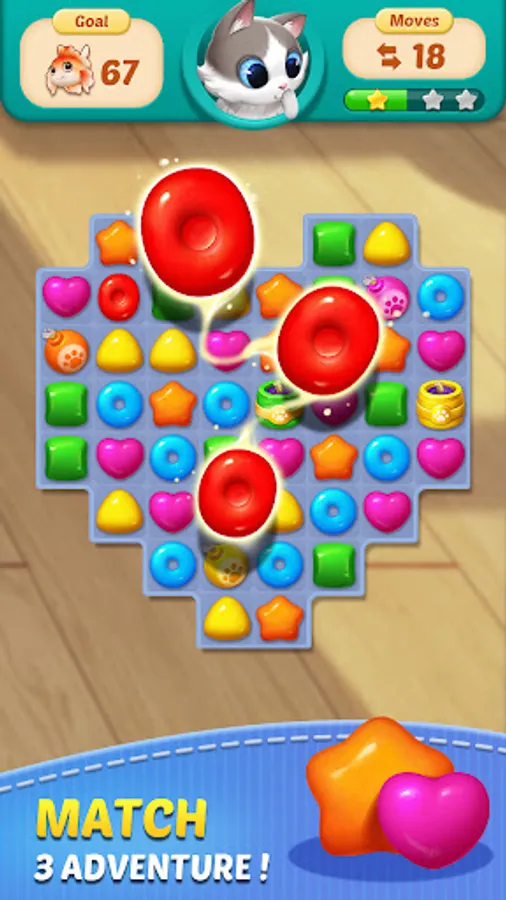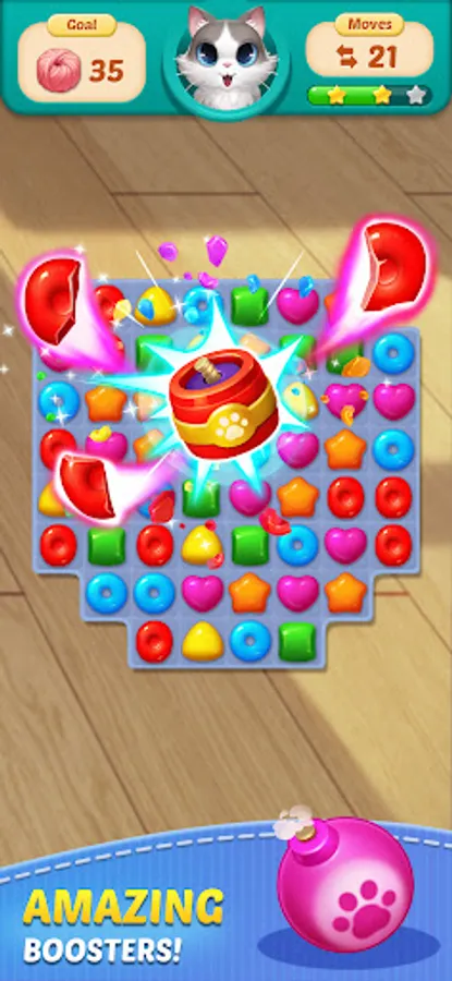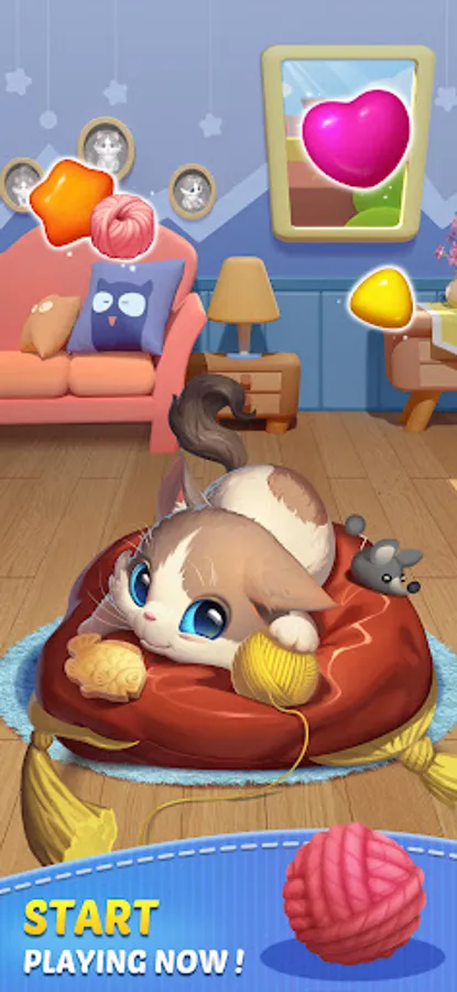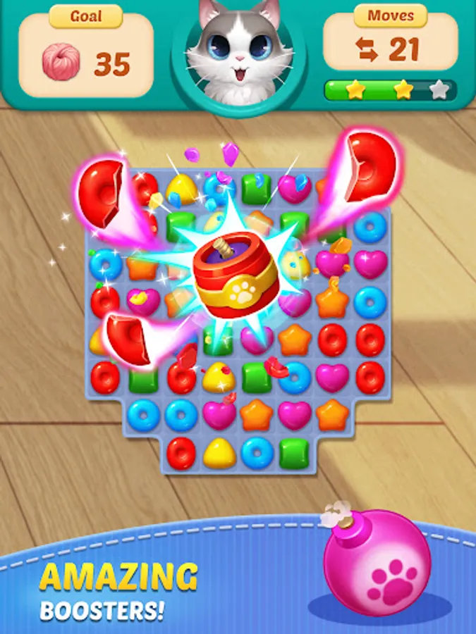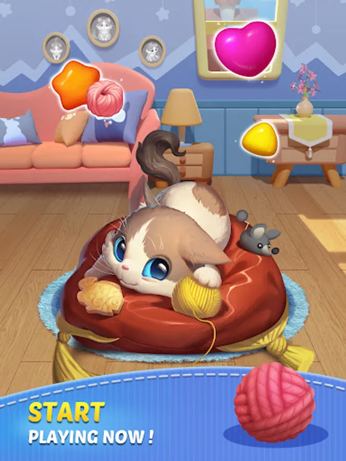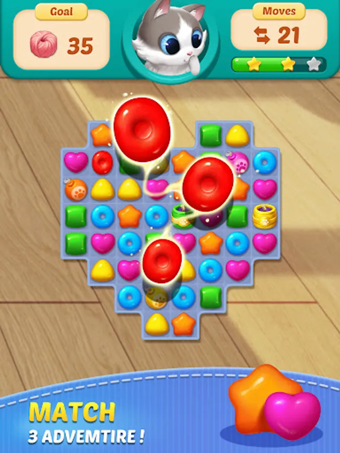 In Cat Match, you will get lovely kitten and unlock a variety of interesting toys and delicious food for the kitten by passing these levels of the match 3 games.