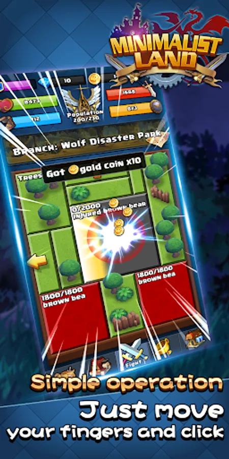 Attacking-monster&Upgrade and Logging&Mining, all you need is to click