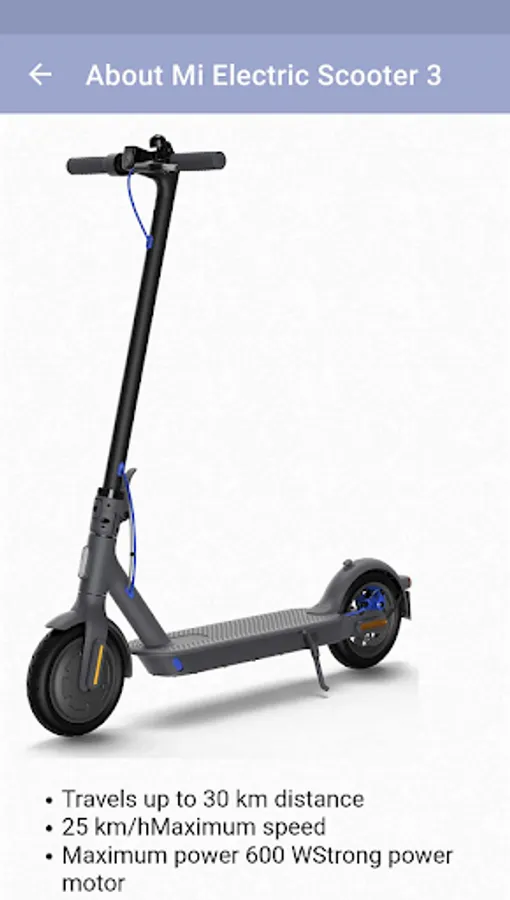 There are explanations such as Mi Electric Scooter 3 features, how to ride, daily care be found on the app. The Mi Electric Scooter 3 have high-quality lithium battery, innovative folding design, lightweight and high-strength aluminum alloy.