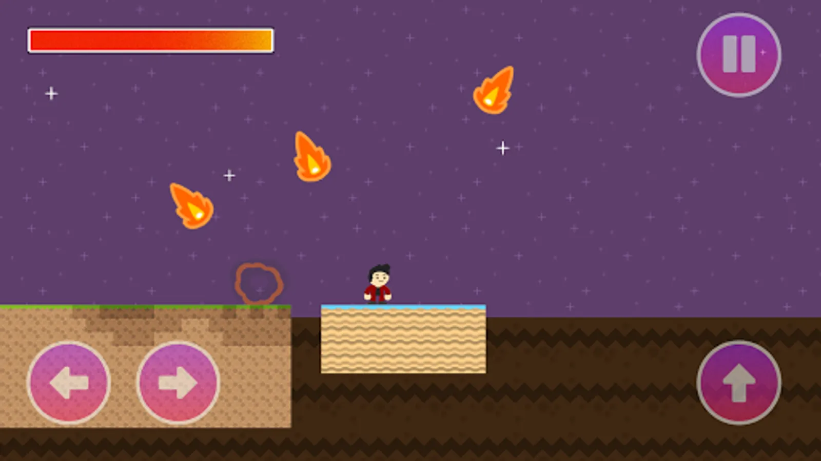A side-scroll platformer where the player must reach the end of the level while dodging the comets From Above The Stars that destroy the world the longer you stay alive