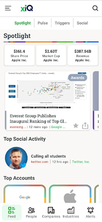 xiQ’s Award-winning solution also provides company News, Financials, CxOs, Social News, Company psychographic and psychometrics, SEC Filings and much more to save sales reps’ valuable time while ensuring they are not blind-sided. All in one simple, efficient stream for intelligent personalization.