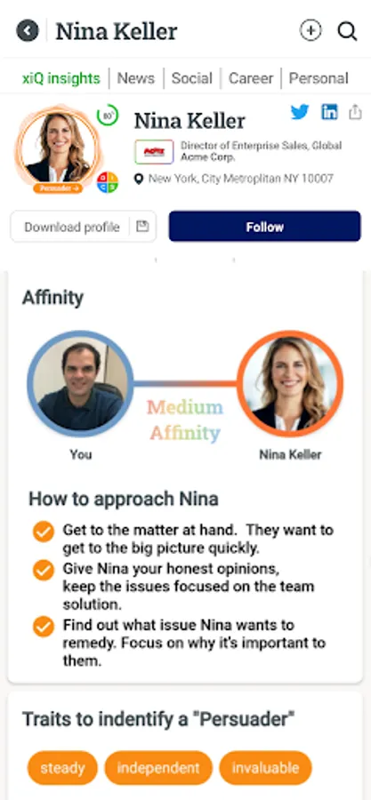 xiQ is used by thousands of sales professionals and is their #1 source of people and account intelligence. It’s super easy: install the free xiQ app, set up your account and people network and follow the instructions to personalize your dashboard!