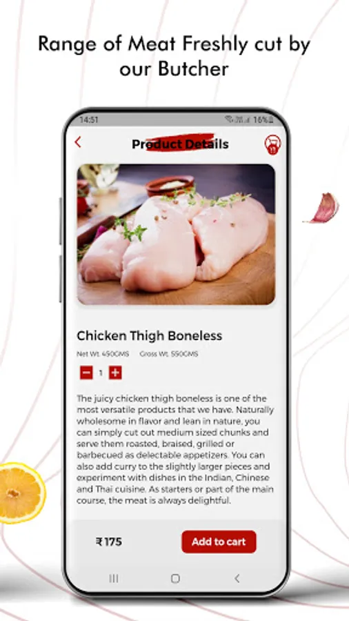 Here at Mesofresh, we offer the full range of fresh chicken thigh boneless, Chicken Curry Cut, Mutton,Seafood and other varieties of products are also available. There is a lot of emphasis on maintaining highest-grade quality check at every step, and hence each product bought from Meso fresh is 100% natural, with no added preservatives, growth hormones or antibiotics. You want to buy chicken online order it from our Application and we will assure you to provide delivery at the same day or on schedule as prescribed by the customer.
