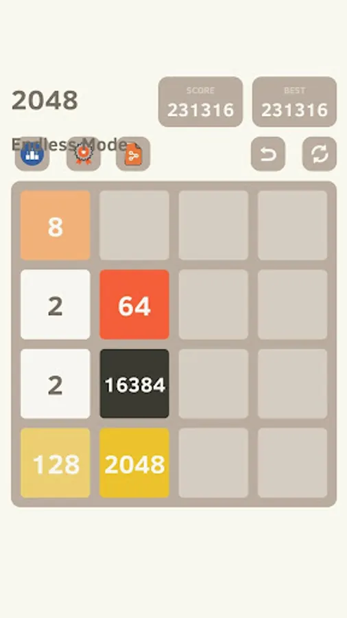 - Endless mode (you can keep playing after 2048... 4096... and more...)