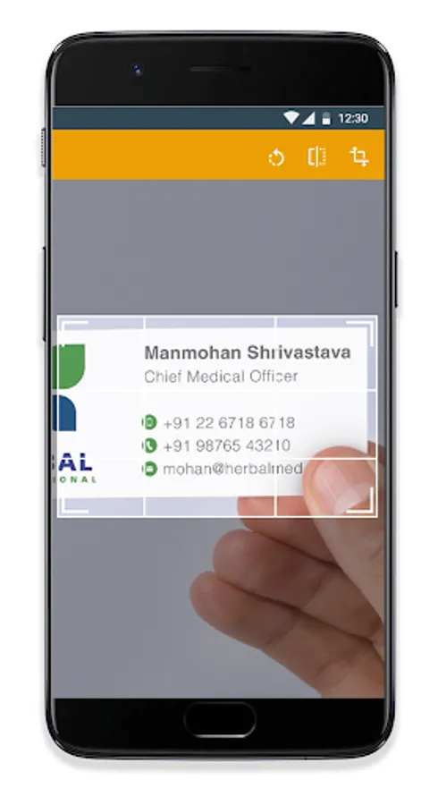 03. Users can capture business cards real time through the camera and use to save in contacts.