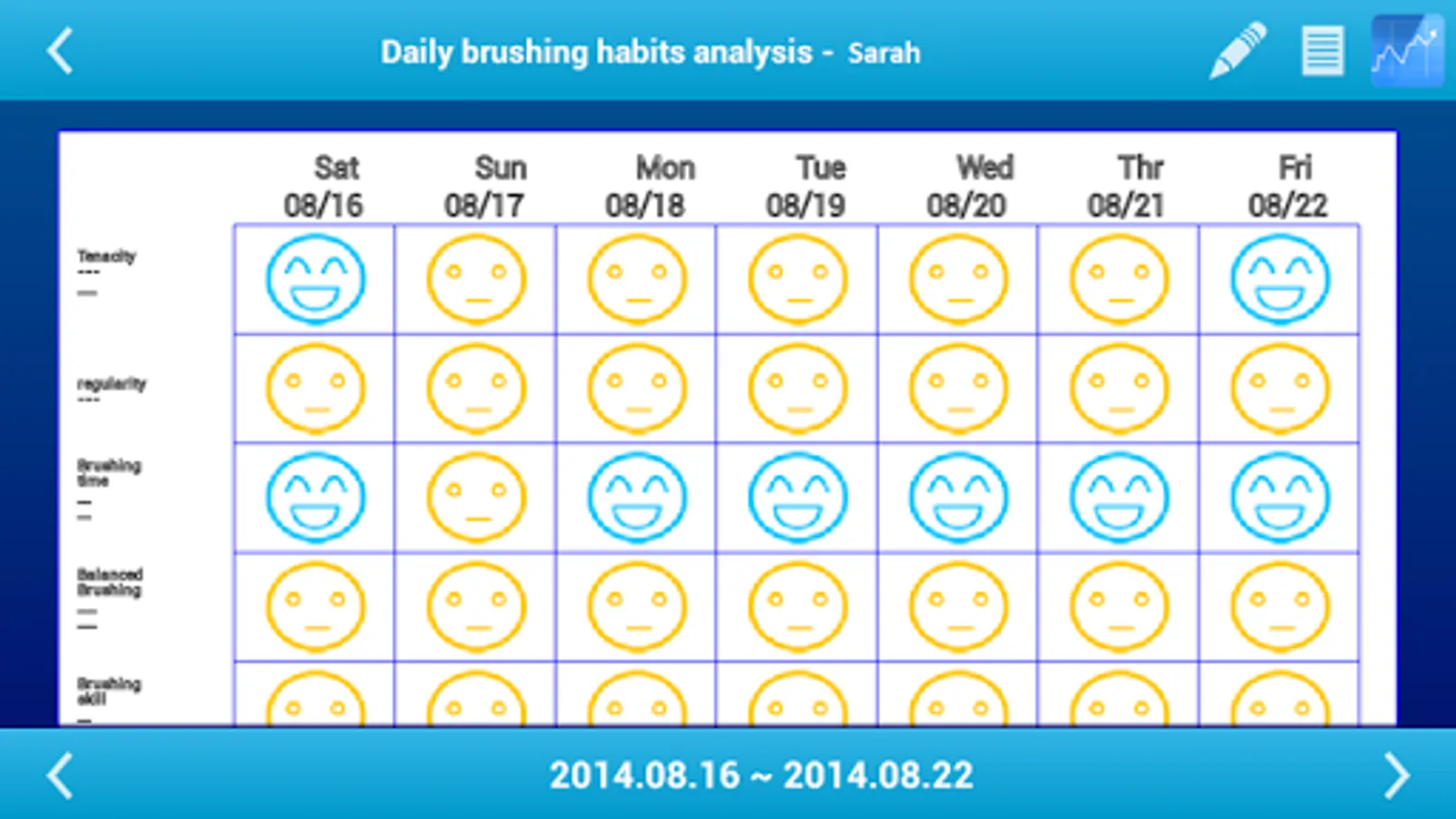. Monitoring tooth-brushing habits of each user: It can monitor brushing score, balance and habit-related tendency of each user. It also offer customized feedbacks by displaying integrated habit-related tendency report and detailed analysis report per each session.