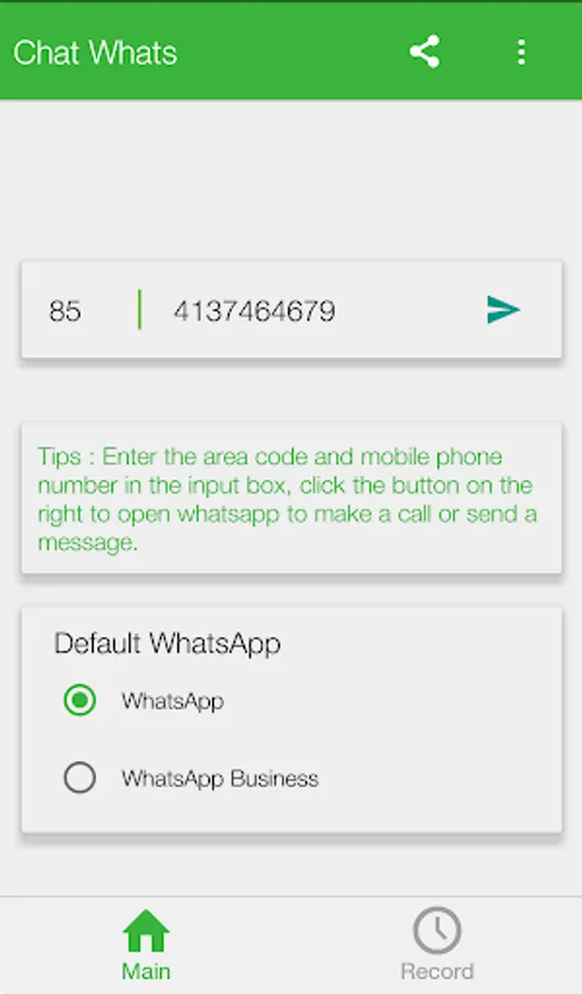 EasyChat helps you to chat in WhatsApp, and you no need save the numbers in your contacts.