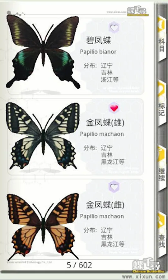 1)涵盖中国目前已知的12科,369属,1229种,1805只蝴蝶。