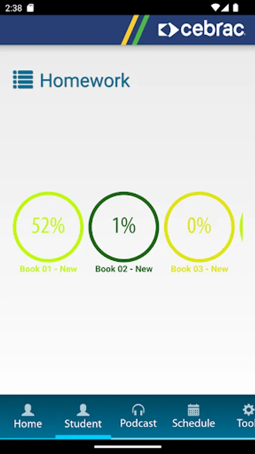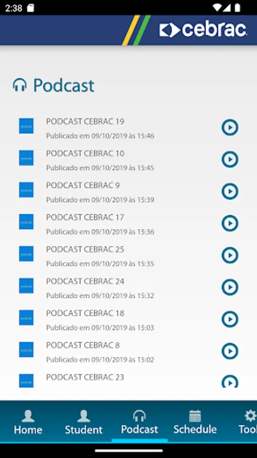 Course Application CEBRAC Inglês for student use, containing the audio, podcasts and schedule of activities.
