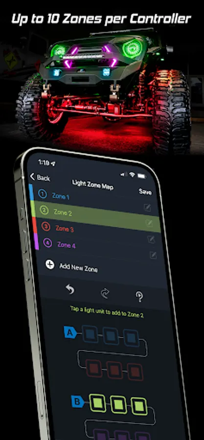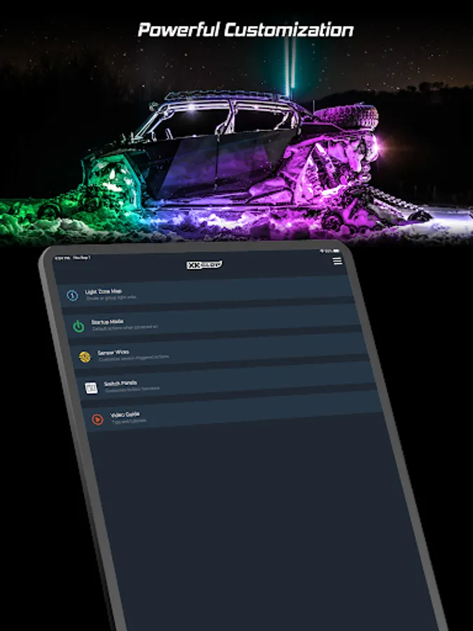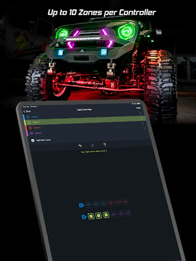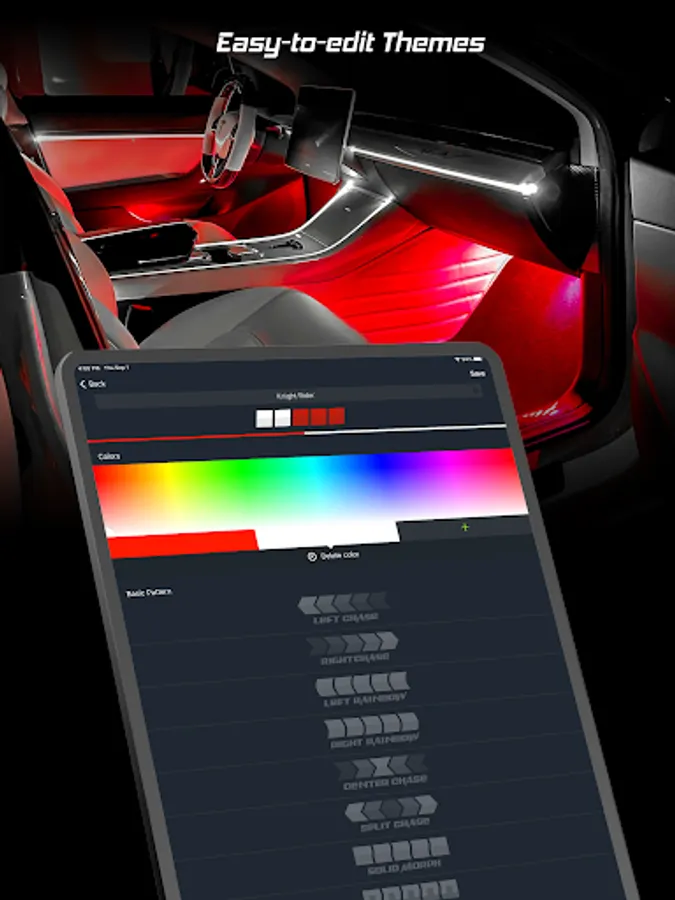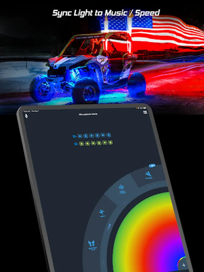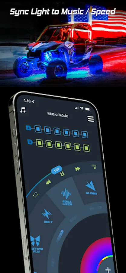 - Sync light to music or speed with equalizer style patterns.